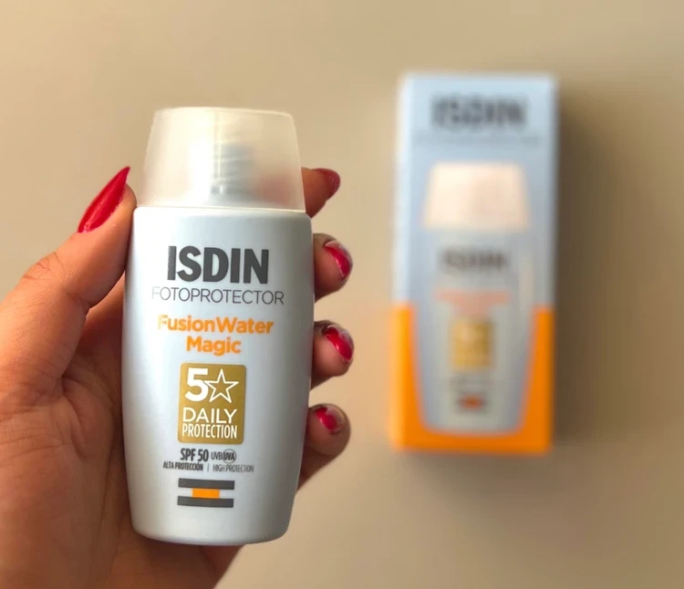 اهمیت محافظت پوست در برابر آفتاب بر کسی پوشیده نیست. این کار مهم ترین تاثیر را در پیشگیری از پیری زودرس پوست دارد. اما بسیاری از افراد به دلیل بافت سنگین ضدافتاب ها از مصرف آن ها خودداری می کنند. یکی از سبک ترین ضد آفتاب های موجود در جهان، ضد آفتاب فیوژن واتر مجیک SPF 50 برند Isdin است. این محصول یک ضد آفتاب فوق سبک صورت برای استفاده روزانه انواع پوست ها است. بعلاوه چشم را تحریک نکرده و در نواحی دورچشم نیز قابل استفاده می باشد.