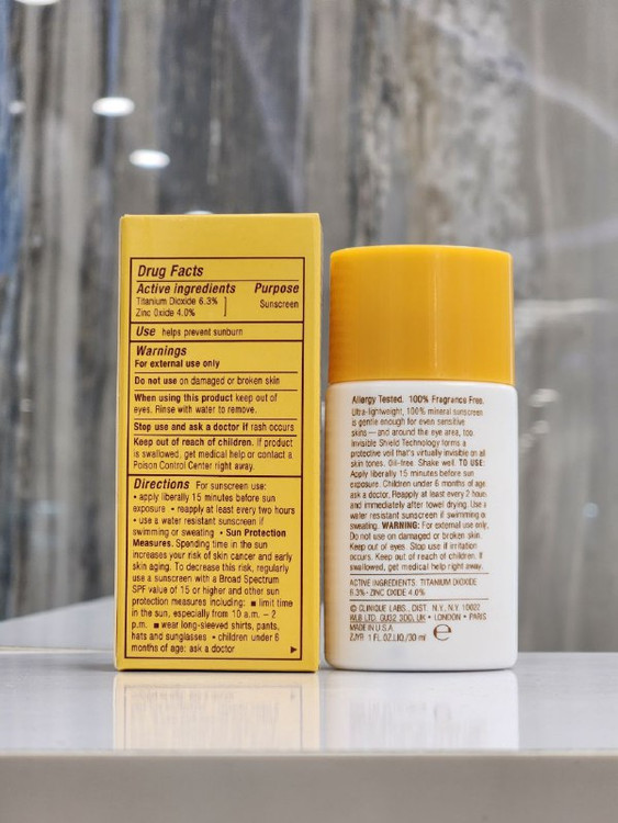 این ضد آفتاب، بافتی فوق سبک دارد و روی پوست احساس چربی و سنگینی ندارد. ضد آفتاب فلوئیدی کلینک، 100درصد مینرال (معدنی) بوده و پوششی بدون رنگ و نامرئی روی پوست ایجاد میکند. این محصول دارای فاکتور محافظتی بالا با SPF 50 است و حتی برای استفاده در اطراف چشم نیز مناسب است. فرمول مایع و بدون وزن ضدآفتاب Clinique، در عرض چند ثانیه جذب پوست میشود. این ضد آفتاب از پوست در برابر اشعههای UVA/ UVBمحافظت کرده و برای انواع رنگ پوست مناسب است. فرمولاسیون فلویید ضد آفتاب مینرال کلینک، عاری از روغن و چربی بوده و برای پوست مختلط، پوست خشک، پوست چرب و بخصوص پوست حساس، ایده آل است